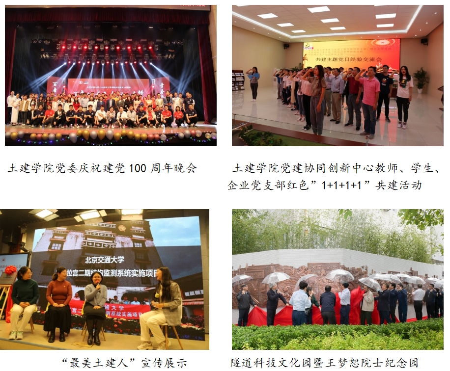 近年来,集体曾先后获评全国高校“双带头人”教师党支部书记工作室(全校唯一)、2个“全国党建工作样板支部”(占全校1/3)、全国高校黄大年式教师团队(占全校1/2)、全国高校“百个研究生样板党支部”(占全校1/2)、北京市先进基层党组织(全校唯一)、2个北京高校先进基层党组织、北京高校德育工作先进集体、北京市教育工会先进教职工小家等荣誉称号,入选北京市教工委主编的《党支部工作规范》典型案例(全校唯一)、北京教工委十个高校教师党支部工作法试点单位(全校唯一)、北京高校100个支部工作法3个(占全校3/8),学院师生党员曾获评全国创新争先奖、全国高校百名研究生党员标兵(全校唯一)、首都劳动奖章、首都精神文明建设奖、北京市优秀共产党员、全国科普工作先进工作者、北京高校优秀共产党员、北京青年五四奖章、全国铁路优秀共青团干部、北京高校就业工作先进个人等荣誉称号。