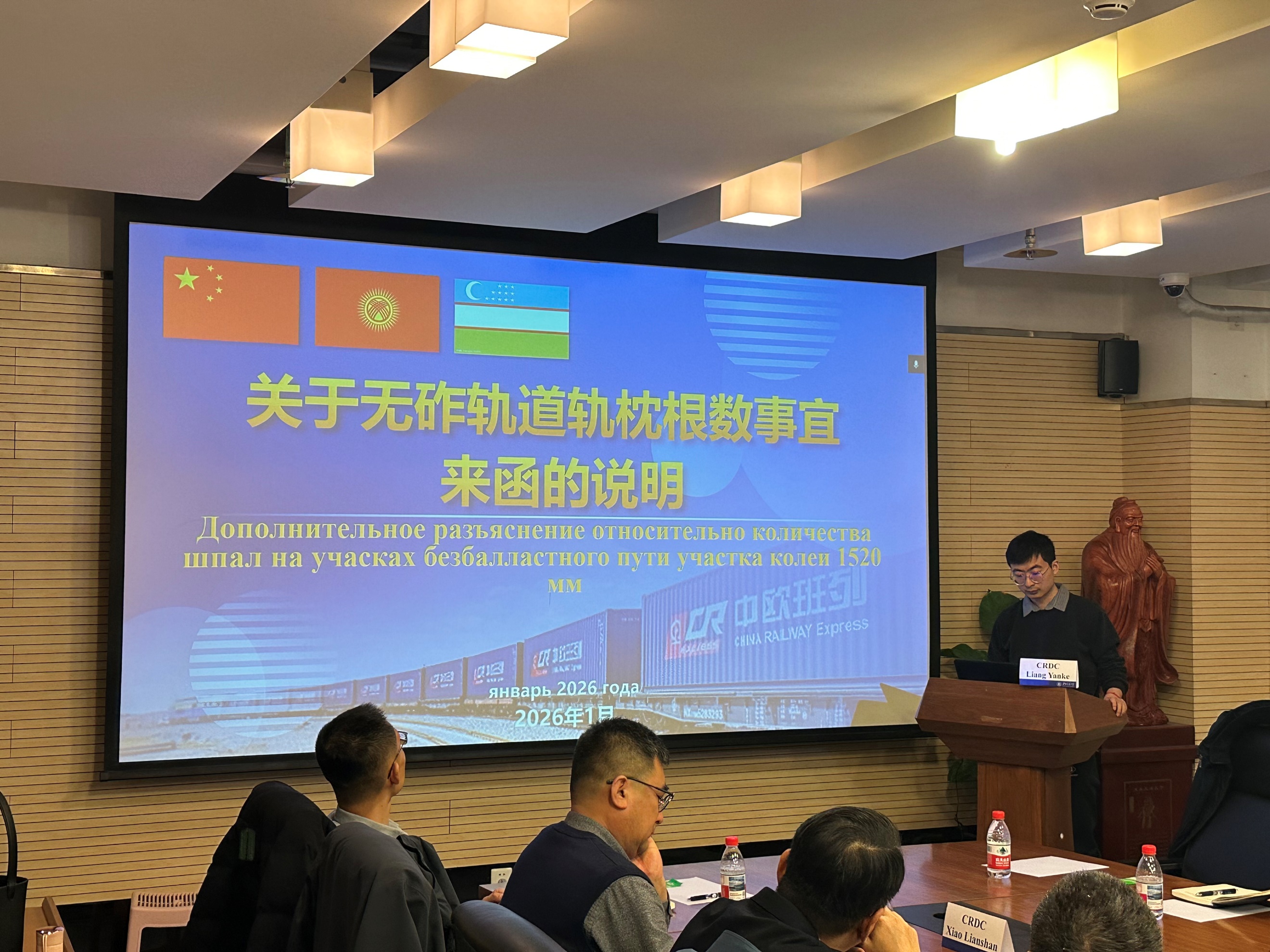 随后,禁漫天堂 中吉乌铁路轨道专业负责人梁延科作了题为《关于无砟轨道轨枕根数事宜来函的说明》的专题汇报。汇报结束后,与会人员聚焦采用中国无砟轨道标准体系核心议题,围绕相较于吉尔吉斯斯坦现行标准进行轨枕根数优化调整后,轨道结构的受力性能变化、长期运营安全性以及全生命周期经济性测算等关键问题,展开了深入、务实且富有建设性的技术讨论。会议现场交流充分,讨论热烈,为推进中吉乌项目技术方案的进一步优化与共识的形成奠定了坚实基础。