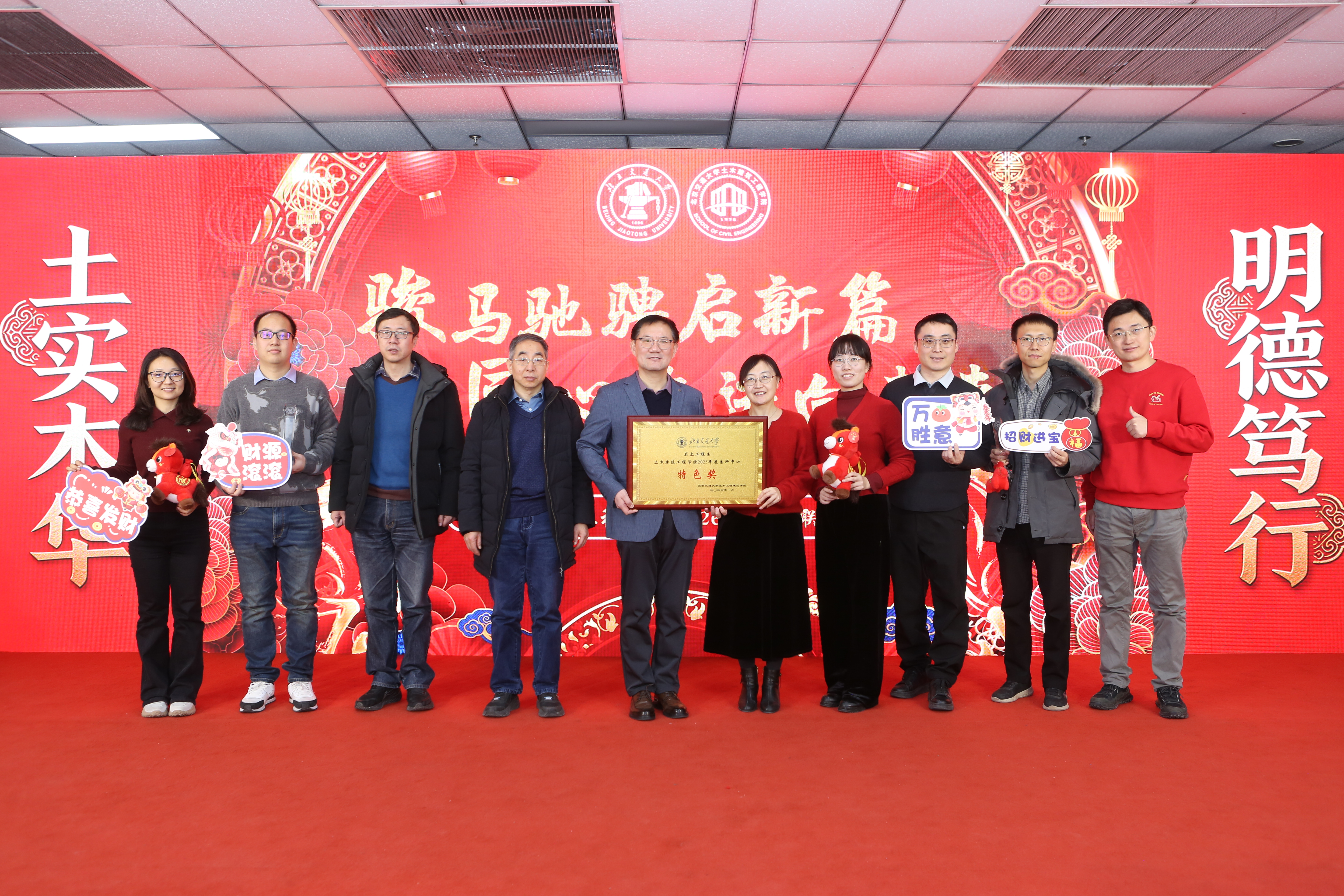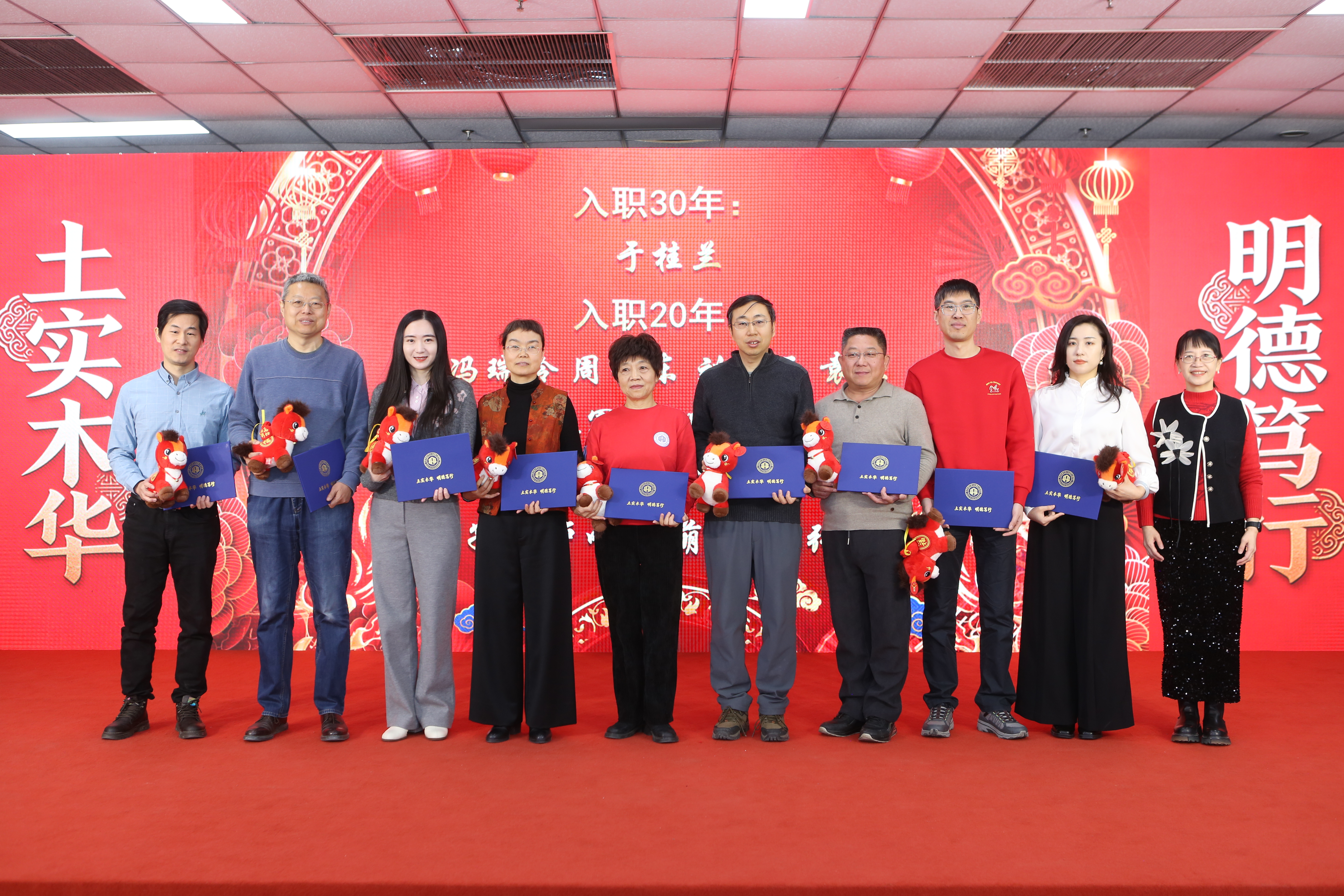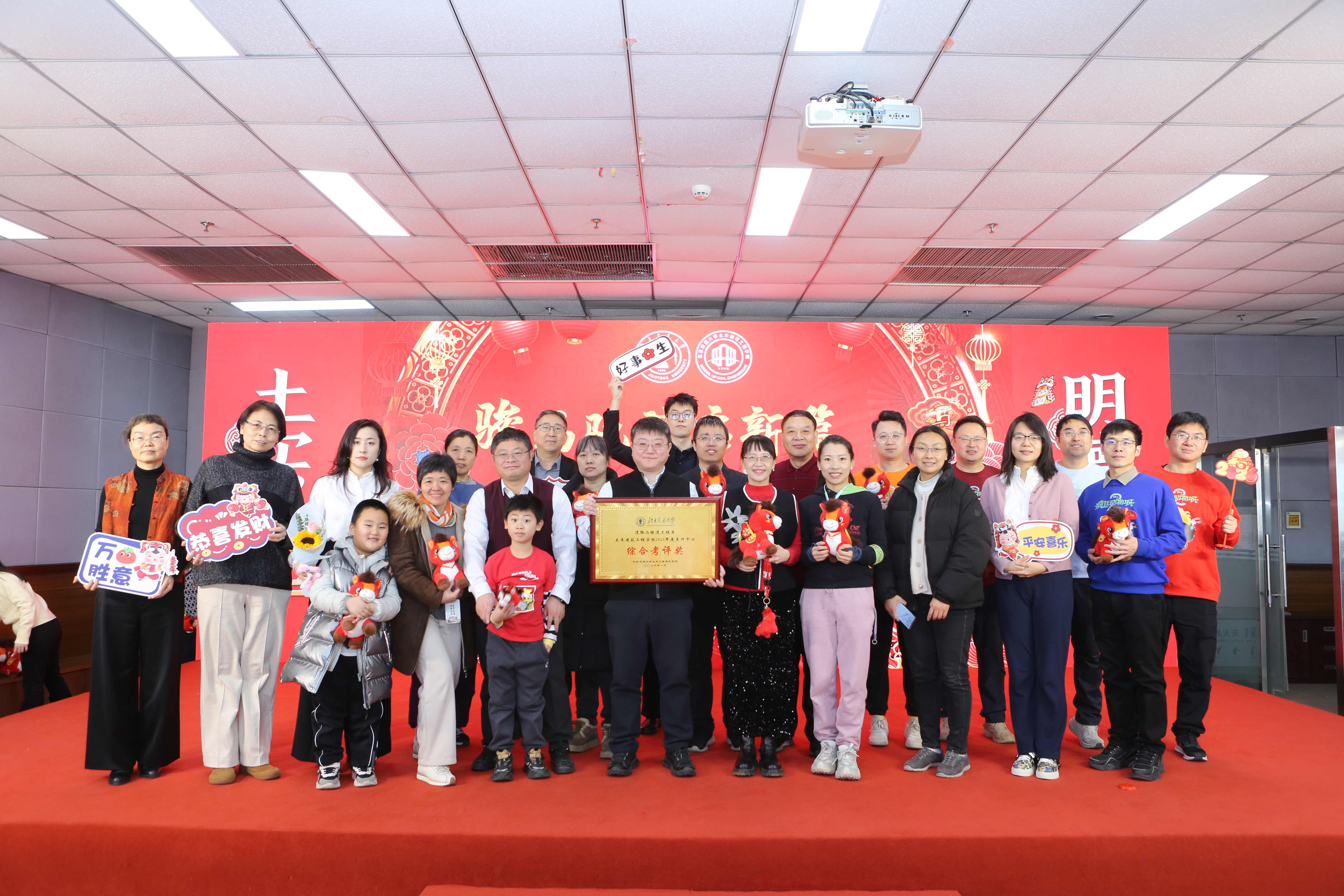 学院对过去一年在各项工作中涌现出的先进集体、优秀教师、先进工作者及在科研、教学竞赛中取得突出成绩的老师进行了集中表彰,树立了学习榜样,弘扬了实干精神。紧随其后的“骏马送福”环节,特别为即将迎来本命年的师生送上了学院精心准备的吉祥物与祝福,寄寓骏马奔腾、前程似锦。互动游戏“家乡至味猜猜看”趣味横生,通过特色美食拉近了彼此距离。新入职教师则以一曲活力满满的《恭喜发财》,展现了新生力量的朝气与融入集体的热情。在温馨感人的“耕耘·传承”值年教师祝福环节,学院向达到特定教龄周年的教师表达了崇高敬意与感谢,彰显了尊师重教、薪火相传的学院传统。